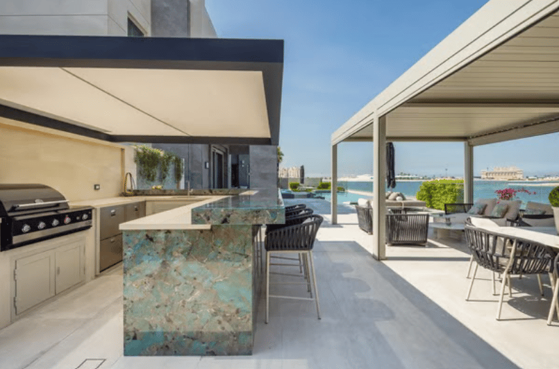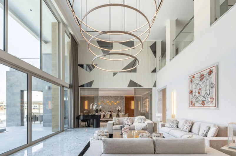 The ground level welcomes with dramatic entry halls, formal salons, a show kitchen, and grand dining spaces, perfect for bespoke entertaining. The private quarters above include four bedroom suites, a serene owner’s level with an office, cinema, fitness suite, and a spa experience that transcends luxury; a sanctuary where design and wellness converge.